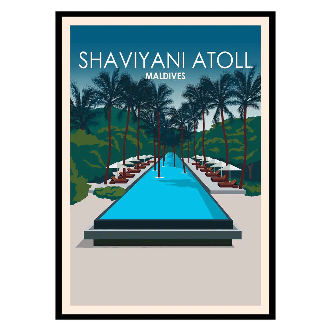 Escape to the crystal-clear waters of Shaviyani Atoll with this Maldives poster. A serene blend of luxury, nature, and tropical calm, it brings a breath of paradise into your space. Perfect for creating a peaceful, sun-soaked atmosphere in any room.